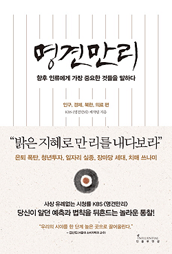이에 대한 해답과 해법을 찾고자 하는 것이 바로 KBS에서 방영되고 있는 다규멘터리 명견만리(明見萬里, 현재 44회 진행 중)이다. 제목부터가 무겁게 느껴지지만 밝은 눈으로 미래를 바라본다는 뜻이다. 방송에 나온 미래에 대한 주요 키워드들 중 인구, 경제, 북한, 의료에 관한 내용들을 엮어 만든 책이다.