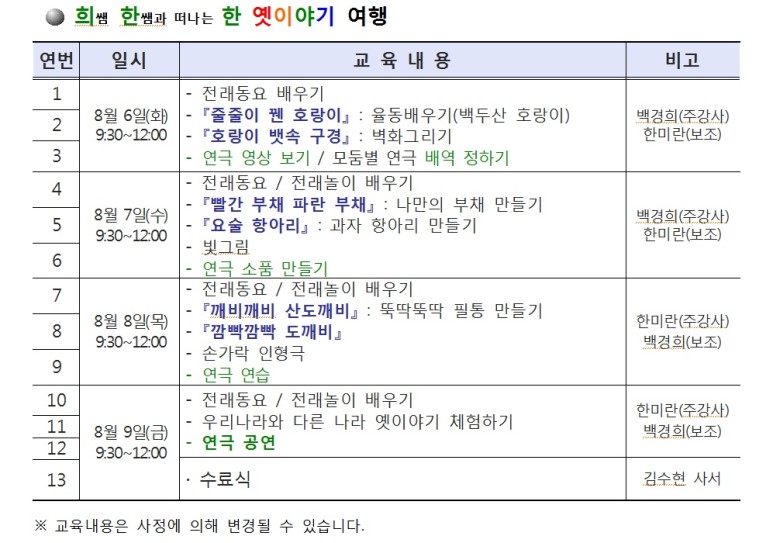 교육 어린이 여름 독서교실
