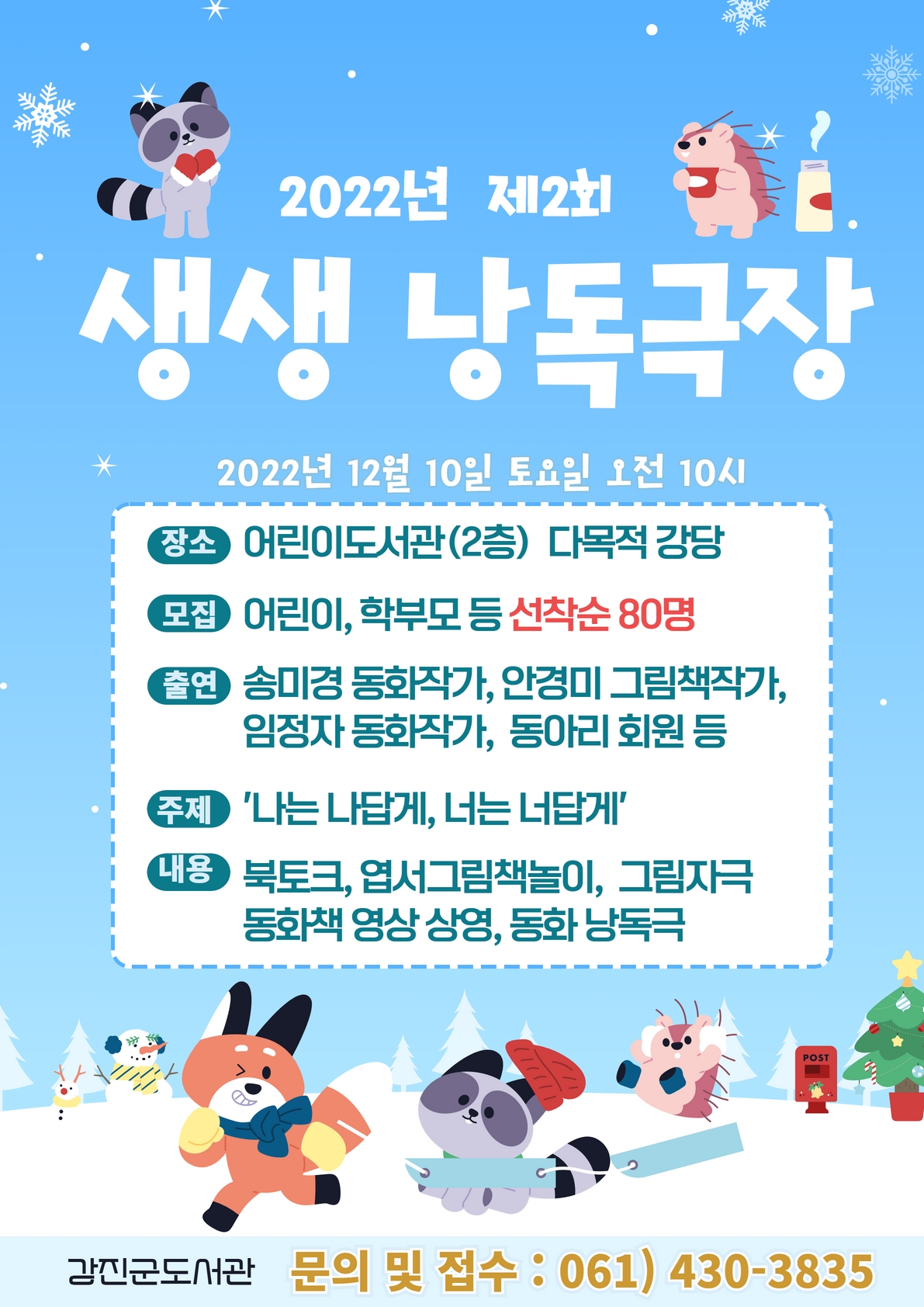 내용:북토크, 엽서그림책놀이, 그림자극, 동화책 영상상영, 동화 낭독극