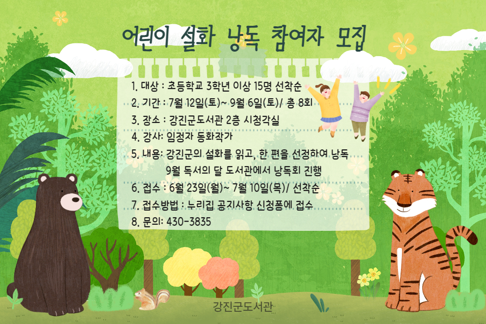 '찾아가는 지역작가' 《어린이 설화 낭독 》참여자 모집