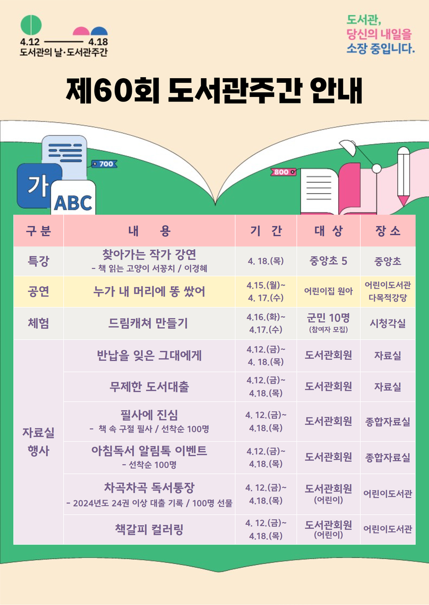 - 주 제: 도서관, 당신의 내일을 소장중입니다