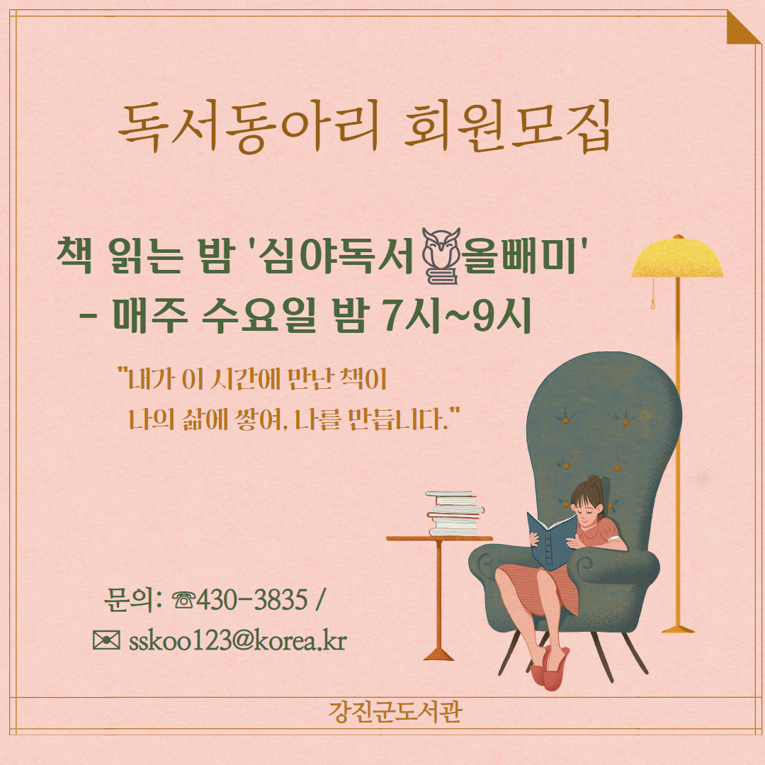 도서관 독서 동아리 〈올빼미〉회원을 모집합니다.
