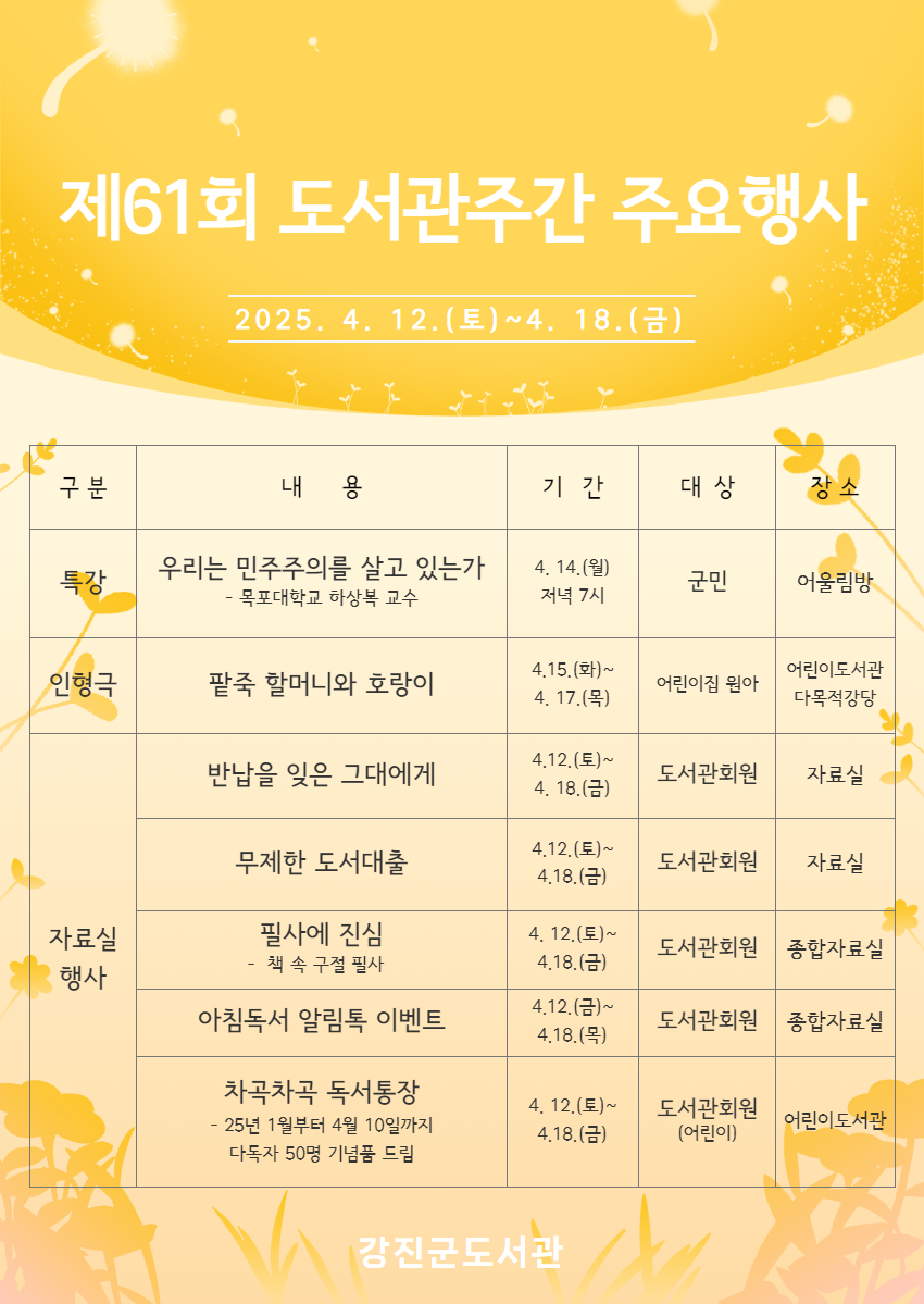 기 간: 2025. 4. 12.(토)~4. 18.(금) / 1주간