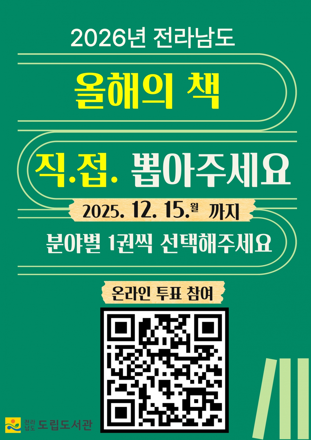 이에 도민 의견을 반영한 2026 전라남도 올해의 책 선정을 위한 온라인 도민 선호도 조사를 실시하오니 많은 참여 바랍니다.